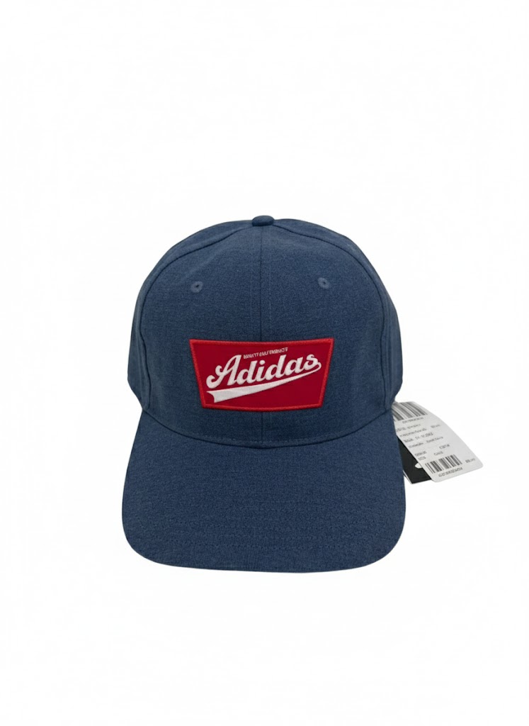 – ด้านหน้าปักชื่อแบรนด์ Adidas มาพร้อมข้อความ QUALITY GOLF PRODUCTS สีขาว