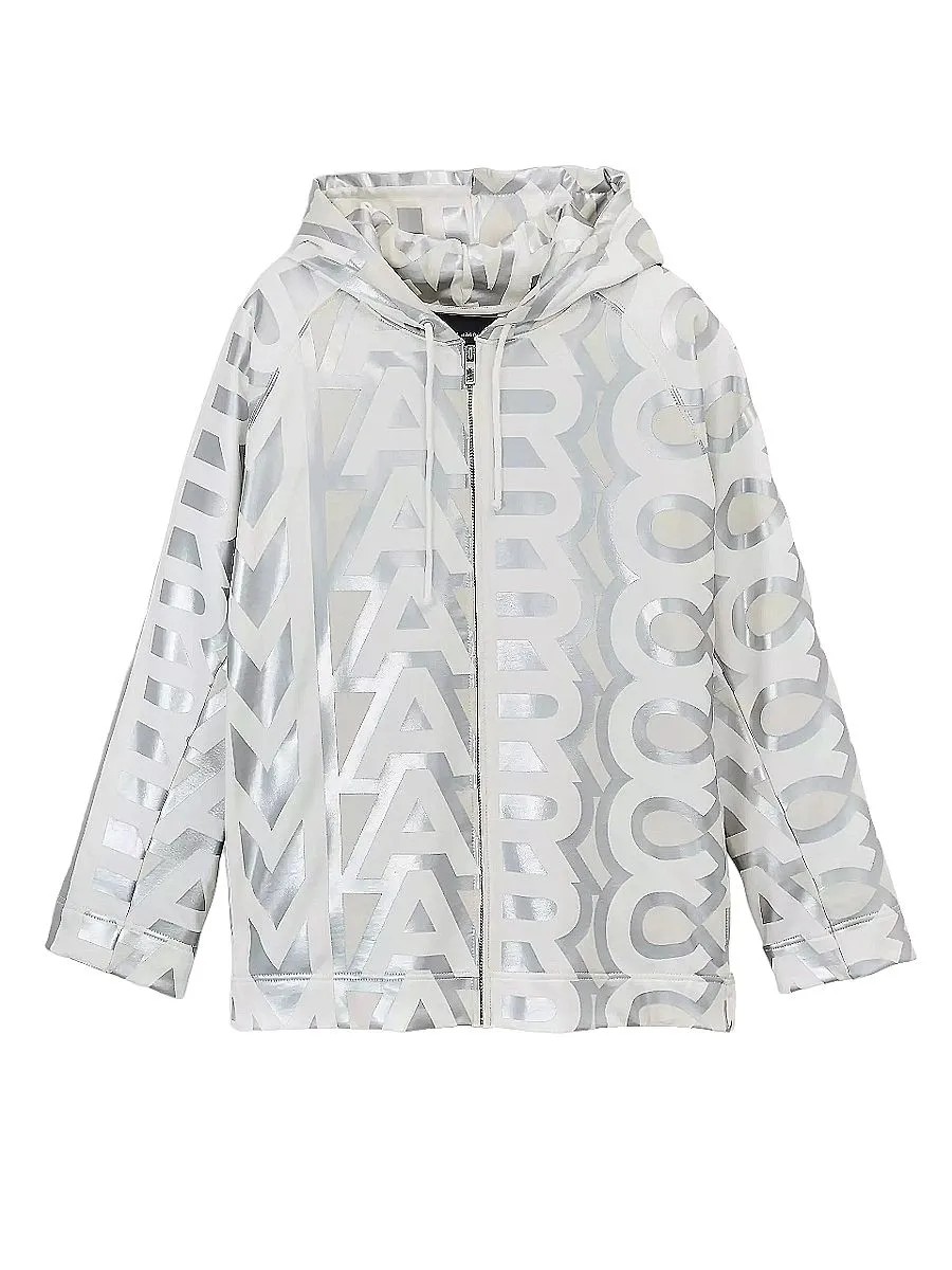 – เสื้อพิมพ์ลายโมโนแกรมแบบฟอยล์ทั่วทั้งตัว