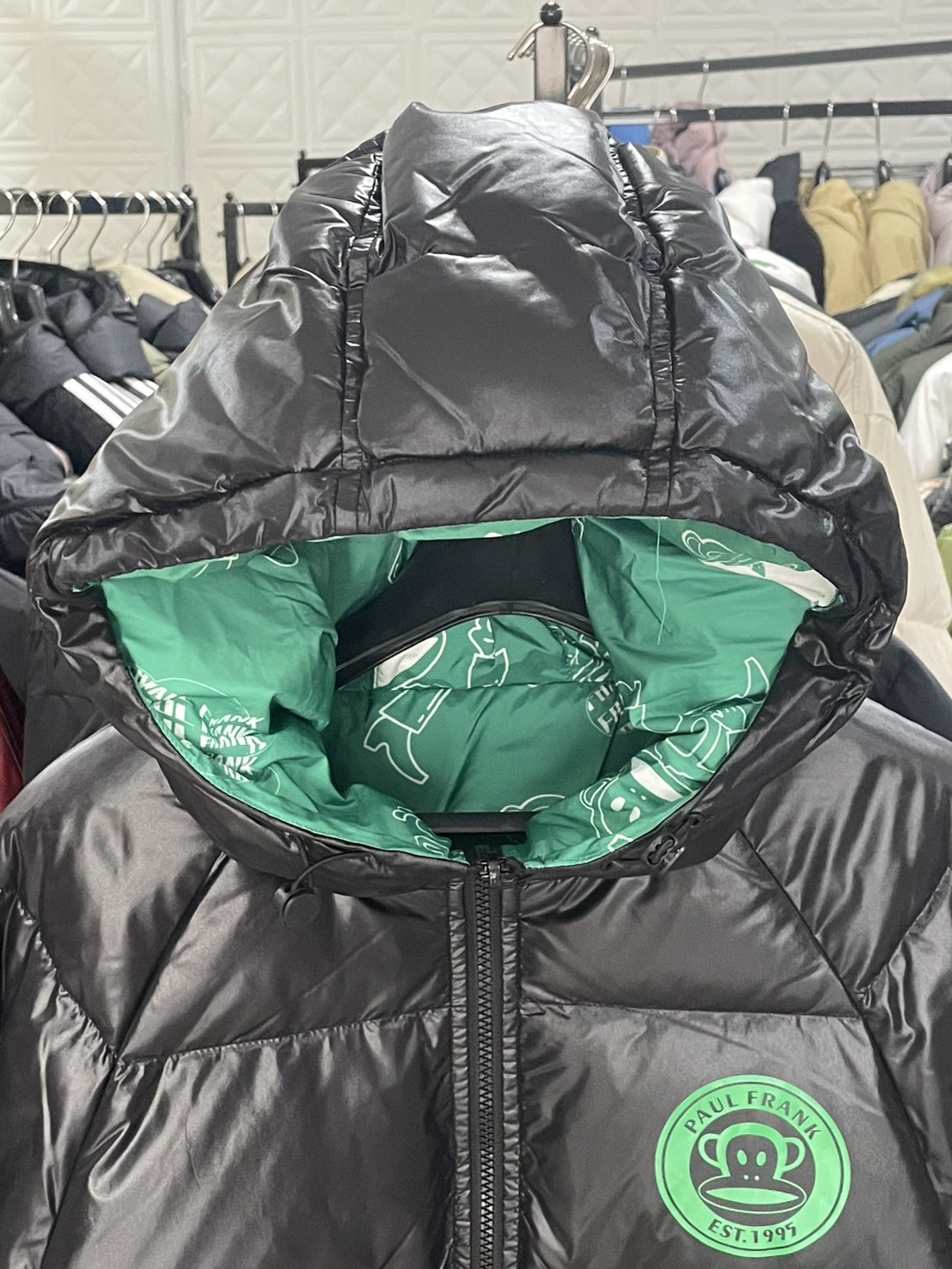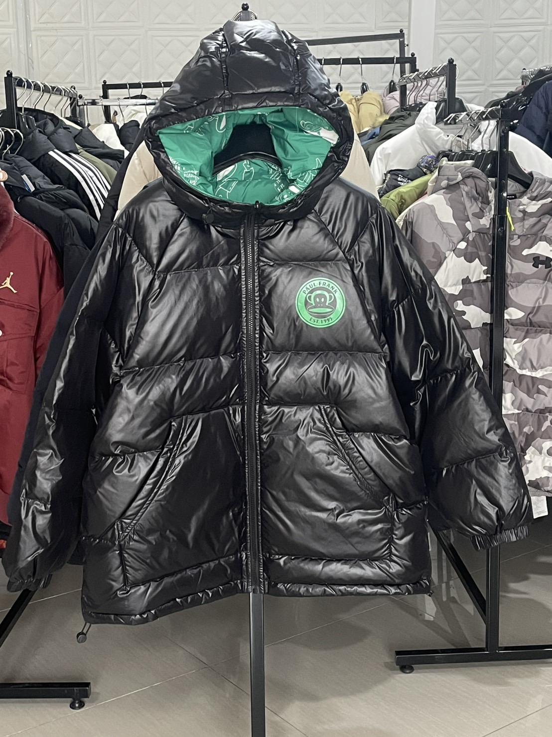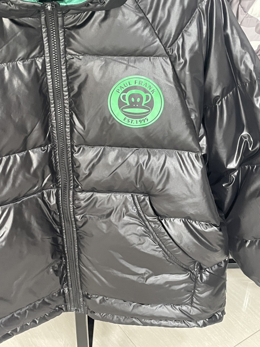 – หน้าอกด้านซ้ายแต่งโลโก้ Paul Frank อันเป็นสัญลักษณ์เฉพาะแบรนด์